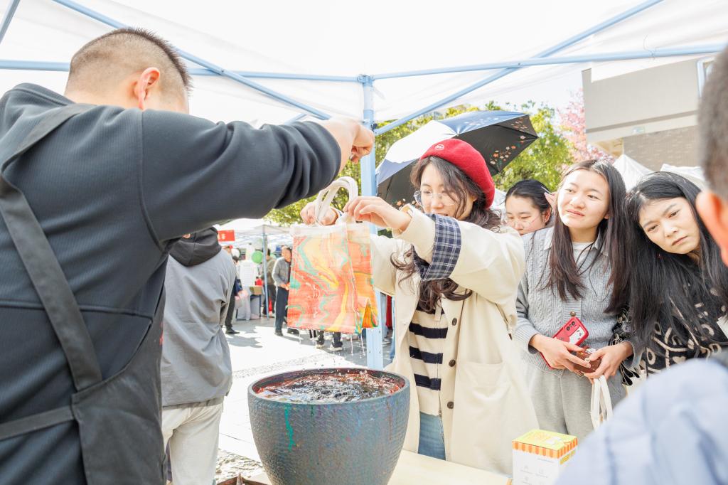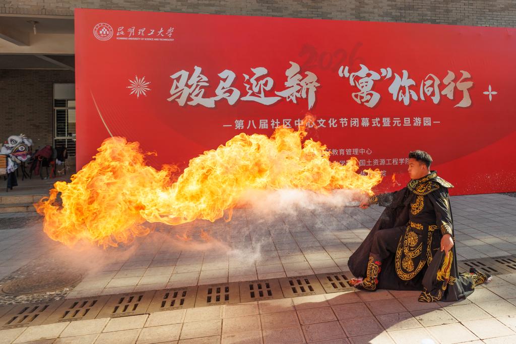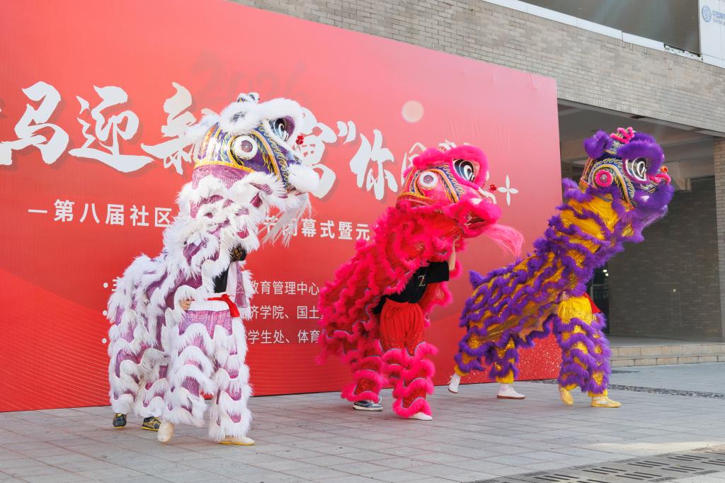本次活动由闭幕式、元旦游园、非遗手作体验、写春联赠福字活动四个环节组成。闭幕式以舞龙舞狮等传统表演拉开序幕,变脸喷火技艺更是引得观众阵阵喝彩,让大家感受到了浓浓的节日氛围。元旦游园活动在呈贡、莲华两个校区分别设置不同类型的游园项目,非遗手作体验共设置点茶、糖画、漆扇、漆包等十余项非遗项目供师生体验,写春联、赠福字的活动现场热闹非凡,墨香四溢。现场还邀请国学社、印社开展汉服、篆刻展示体验活动。